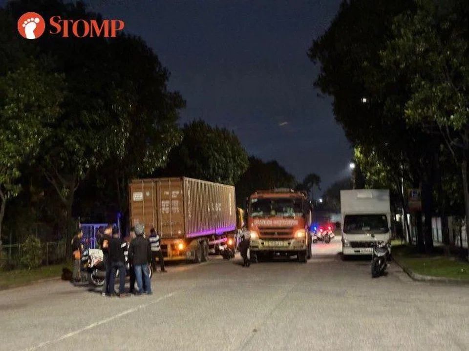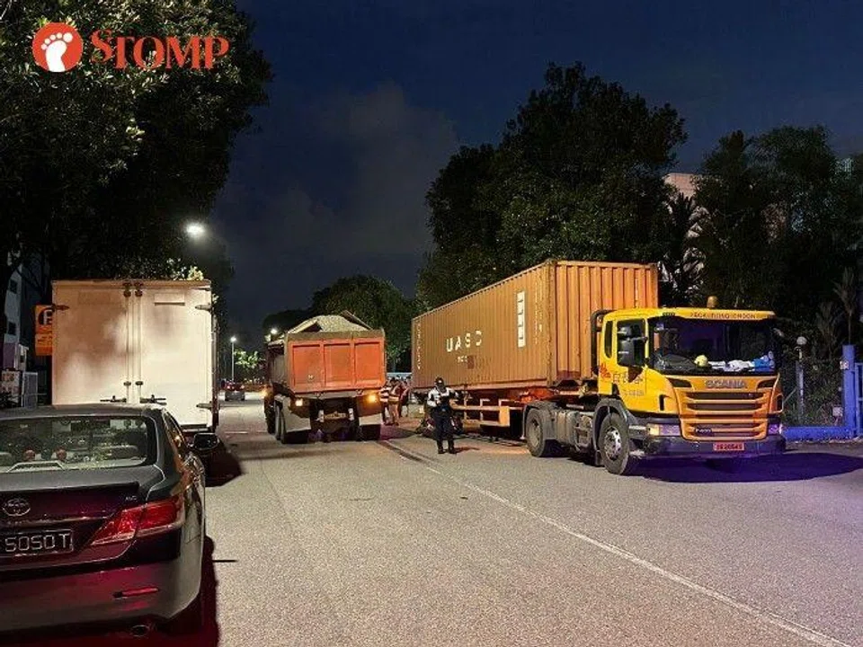 Motorcyclist taken to hospital after accident with trailer and tipper truck at Pandan Road
