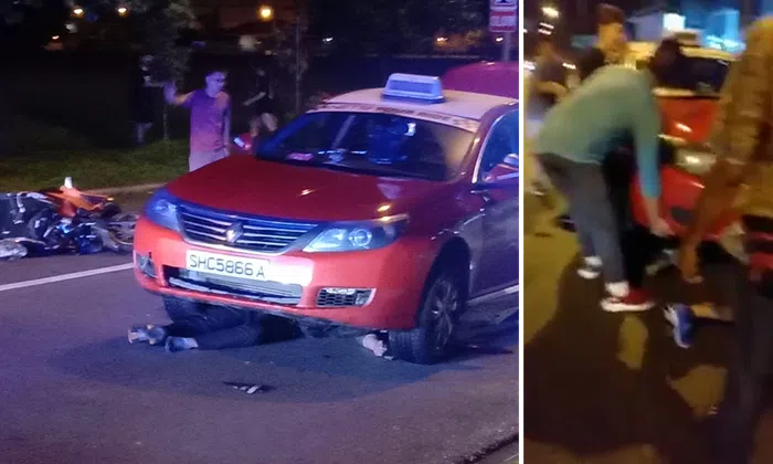 Responding to Stomp queries, the police said they were alerted to an accident involving a taxi and a motorcycle along Jurong West Street 24 towards Jurong West Avenue 3 at 8.06pm.