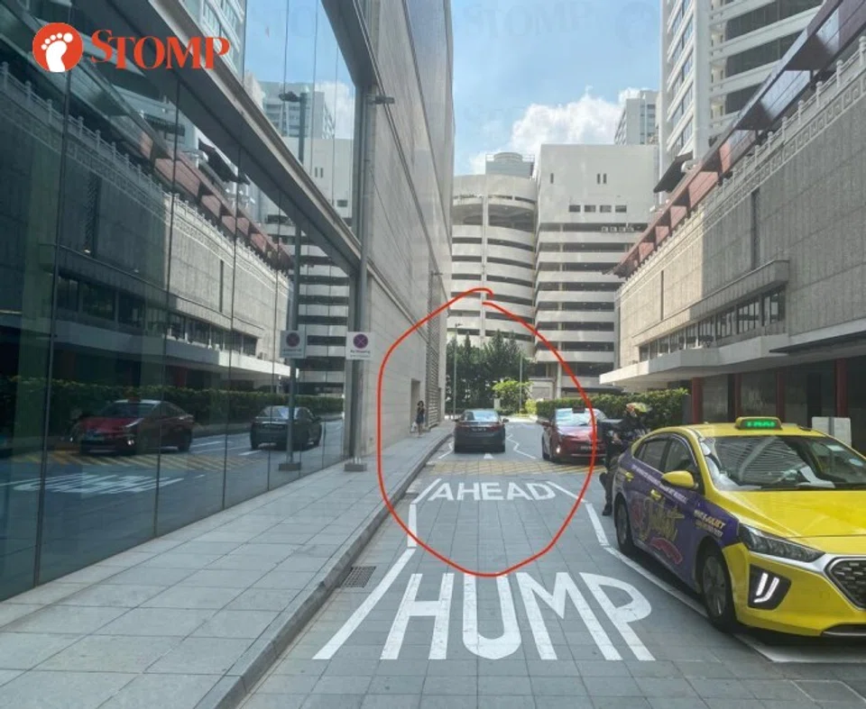 A motorist allegedly glared at people using the zebra crossing in the alleyway between Tang Plaza and Scotts Square before driving through the pedestrians.