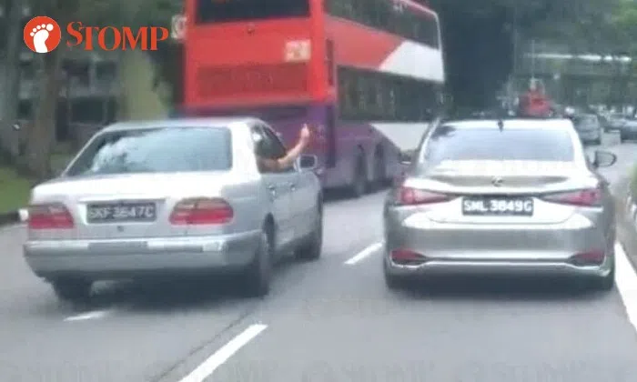 A motorist was apparently caught in the middle of a spat between the drivers of a Mercedes-Benz and a Lexus at Delta Road on Friday morning (March 31).