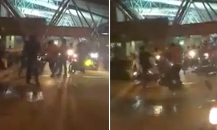 In the video, a motorcyclist in black was seen hitting another man in red.