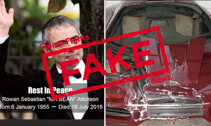 Stomper Dean had alerted Stomp to photos of Atkinson's "death", which included pictures showing the British actor bleeding from the head and a mangled car that was supposedly driven by him when the so-called accident occurred.