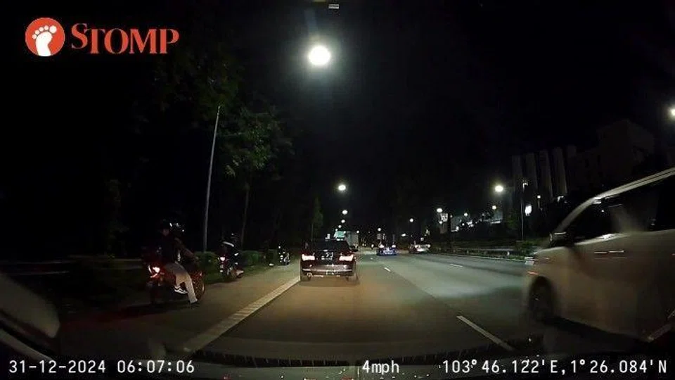 A BMW with Malaysian plates was caught on camera nearly caused an accident on the Bukit Timah Expressway (BKE) on the morning of New Year's Eve.
