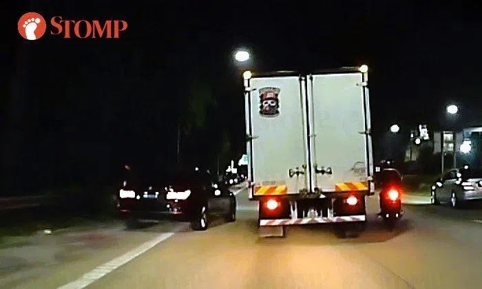 M'sian BMW driving out of road shoulder nearly causes accident with truck, motorcycle on BKE
