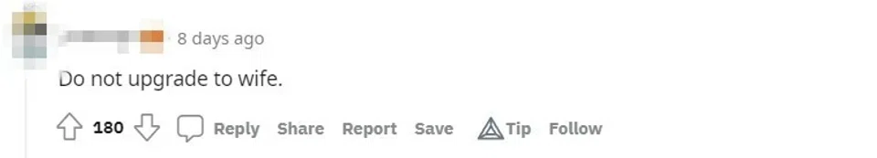 Others simply cut to the chase; one simply warned the man not to "upgrade" his girlfriend to become his wife.