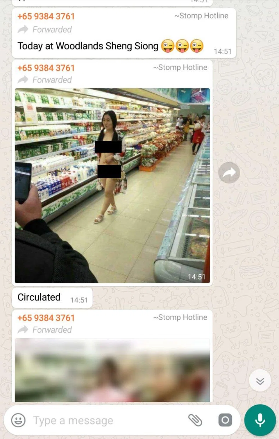 Stompers Christopher and Dennis alerted Stomp to the photo of the woman, accompanied by a message claiming that this incident happened in a Sheng Siong outlet in Woodlands.