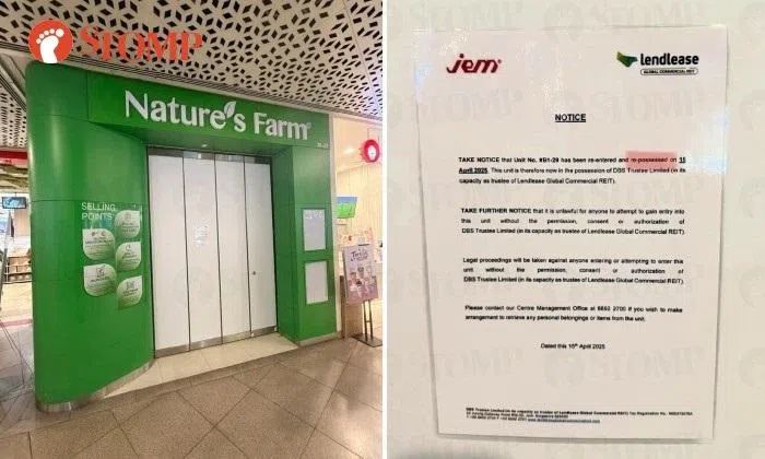 The Nature's Farm outlet at Jem was repossessed on April 15, according to a notice put up by landlord Lendlease Global Commercial REIT.