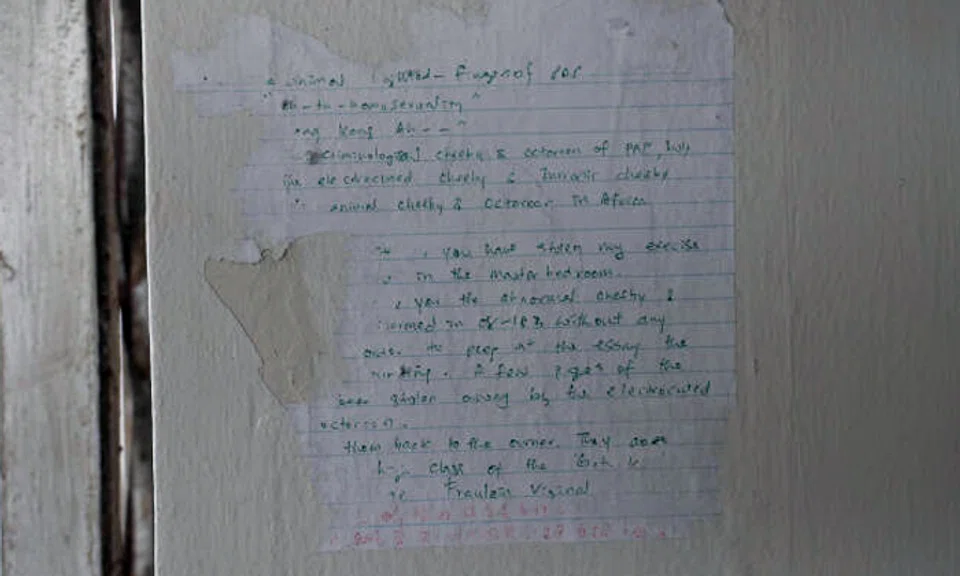 The note by the man was incoherently written in English and Mandarin. Photo: Shin Min Daily News