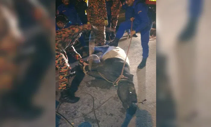 The incident was said to have happened at Taman Desa Saujana, Batu 14, Hulu Langat. The tapir had wandered off and had fallen into a drain.