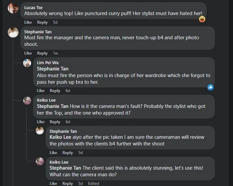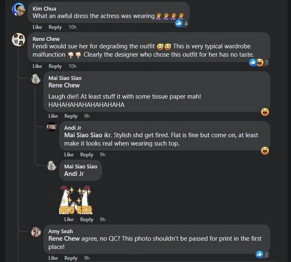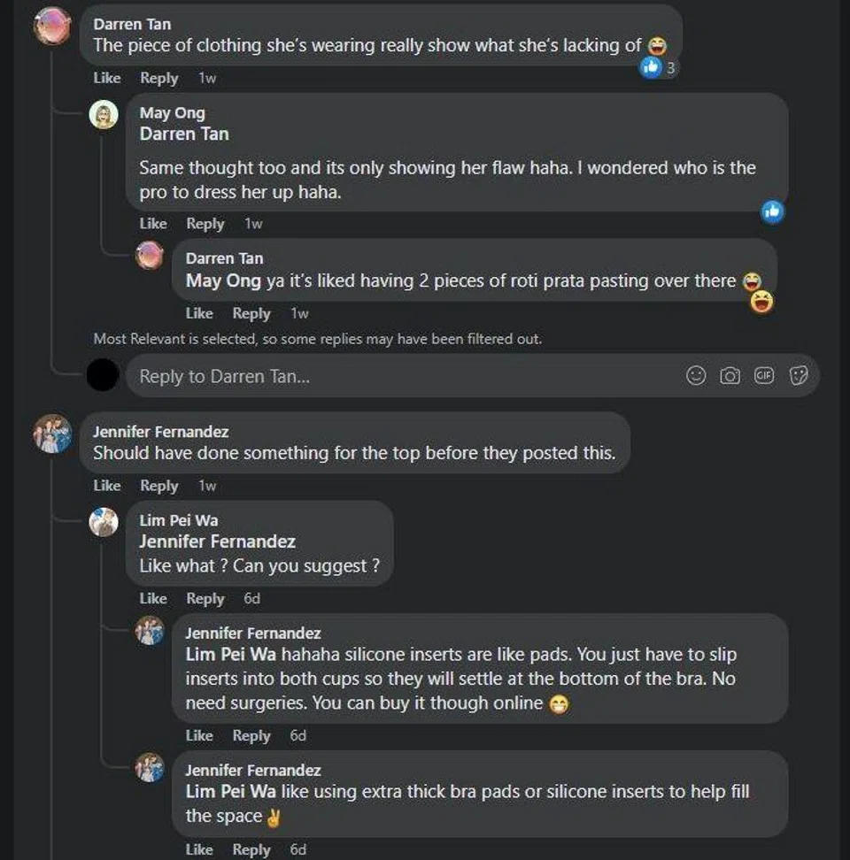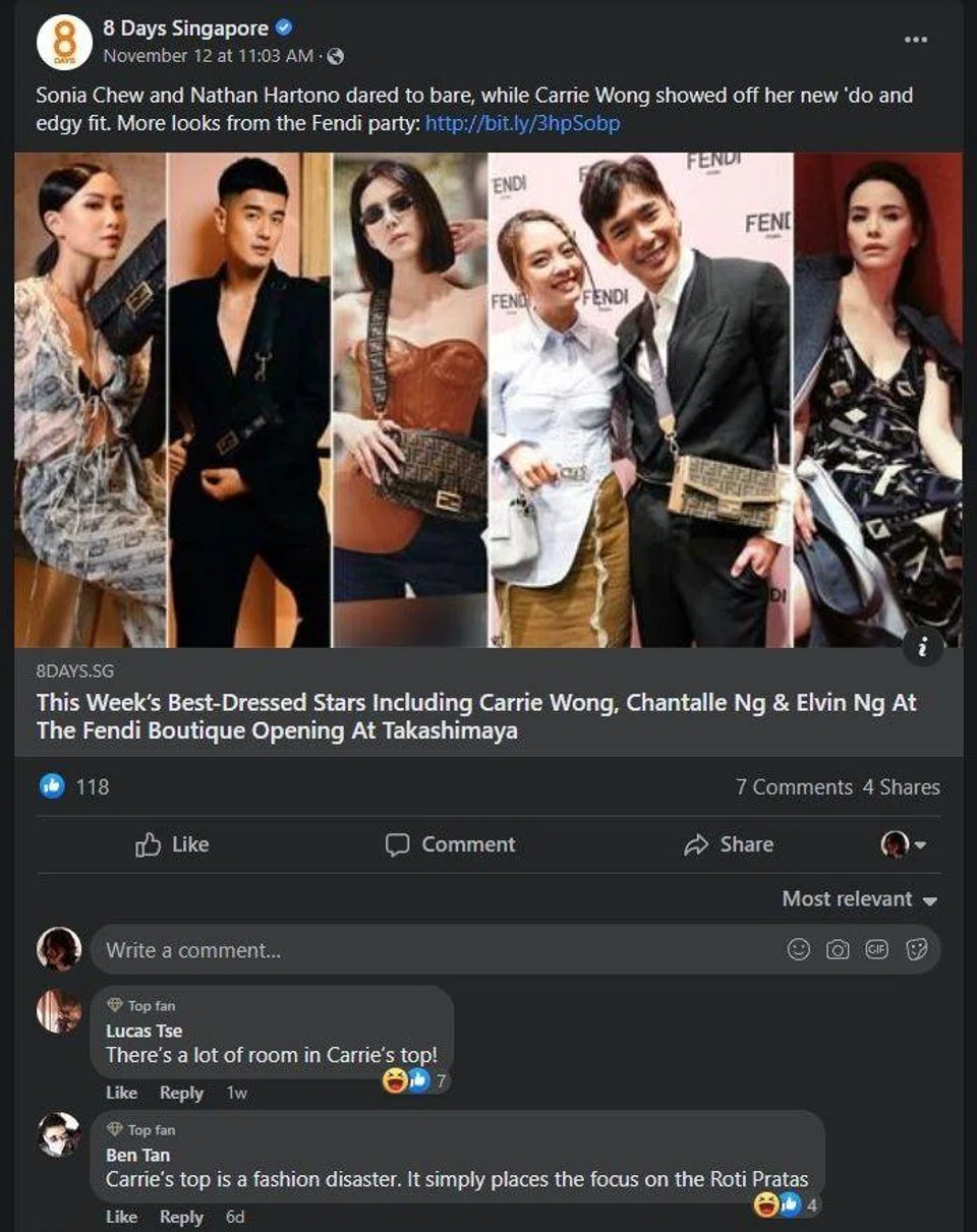Similar unkind comments were also found on earlier Facebook posts by The Celebrity Agency and 8 Days of her wearing the same top.