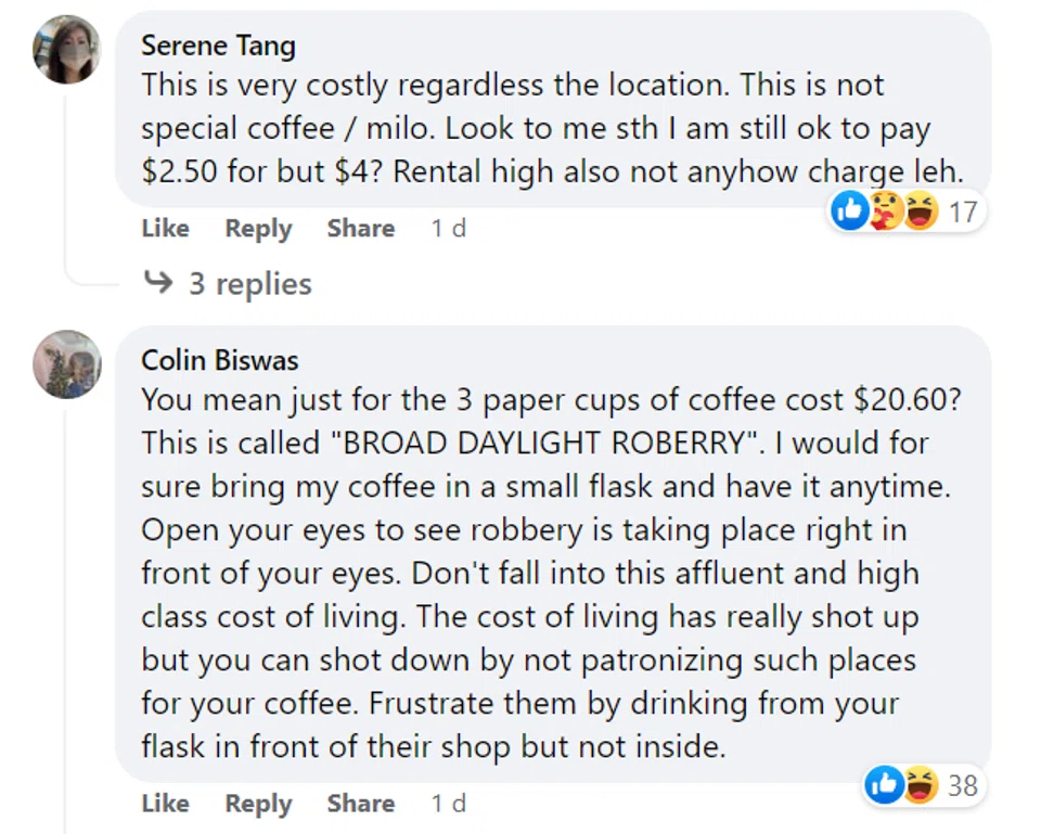 His post has drawn over 160 comments, with many netizens agreeing that the drinks were overpriced.