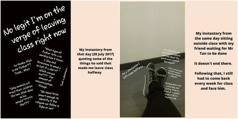 Since she put up the post about the incident on Instagram, Ms Nurul said more accounts about Mr Tan from other students have come to her attention. PHOTOS: NURUL FATIMAH BINTI ISKANDAR/INSTAGRAM