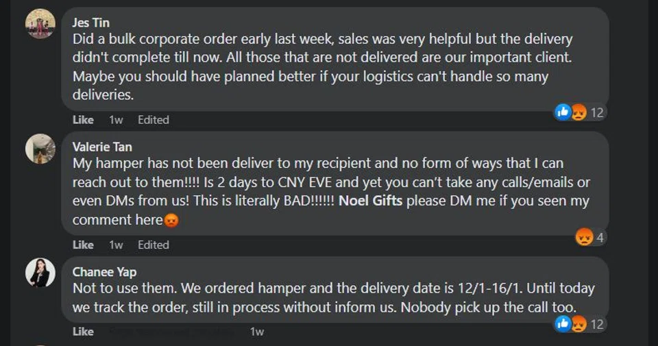 Noel Gifts has apologised after frustrated customers complained about the non-delivery of their Chinese New Year hampers.
