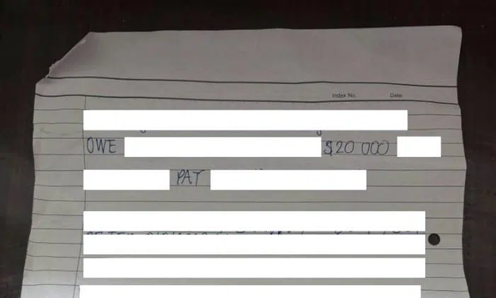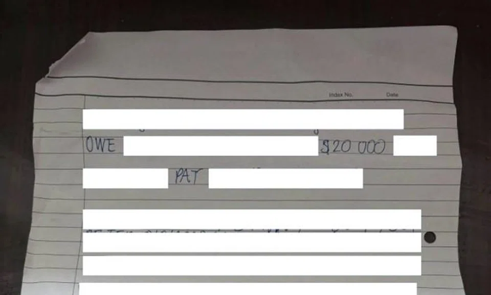 The police were alerted to the case on Aug 11 at about 4.10pm after a debtor's note was placed on the gate of a flat.