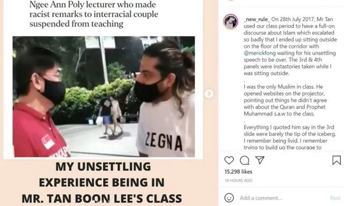 One user on Instagram alleged that Mr Tan once made disparaging comments about Christianity in class, causing outrage among the students, while another alleged that the lecturer had made her take off her hijab.