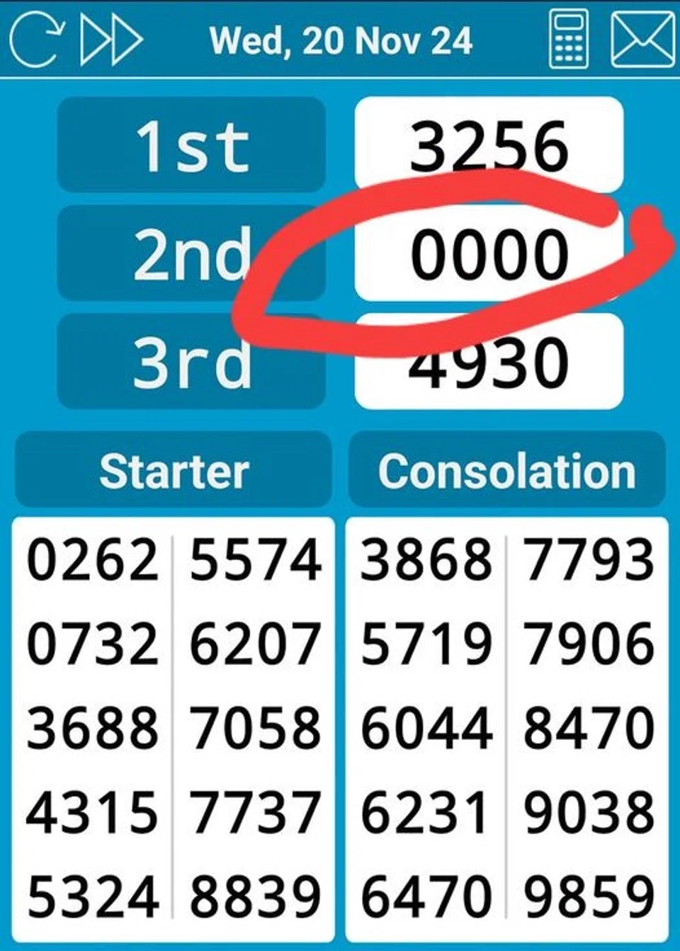 Number 0000 wins second prize in 4D draw for second time after over 10 years