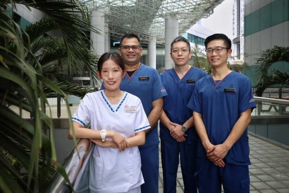 (From left) Ms Gladys Leow, NDCS senior consultant Rahul Harshad Nagadia, SGH senior consultant Liang Weihao and NDCS consultant Benjamin Ng. ST PHOTO: TARYN NG