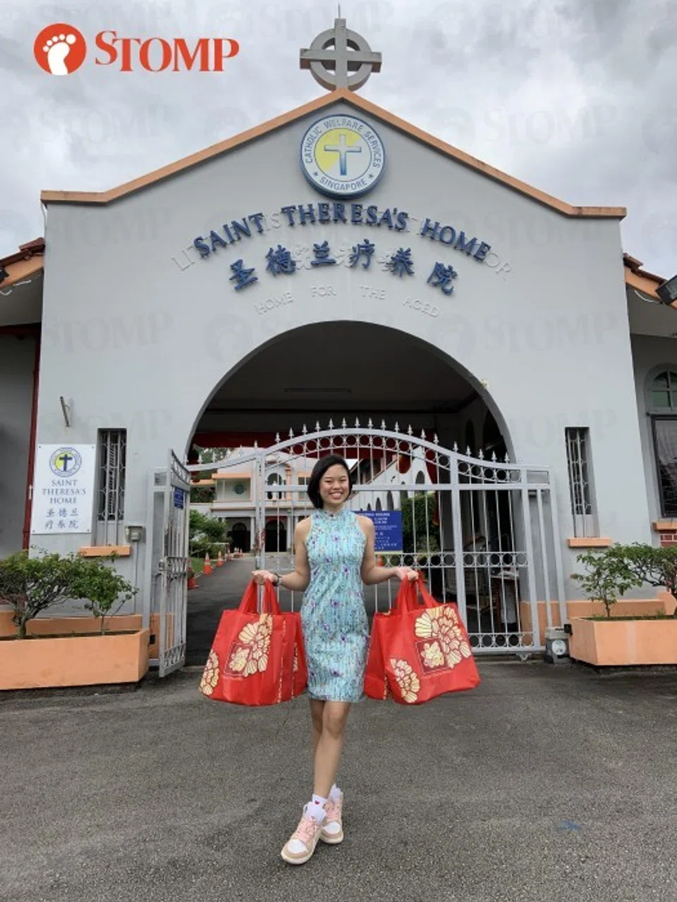 Her mother, Stomper Audrey, shared that on Jan 29, the first day of Chinese New Year, Miss Yap delivered festive goodies such as pineapple tarts, love letters and almond cookies to the elderly residents of St Theresa's Home at Upper Thomson Road.