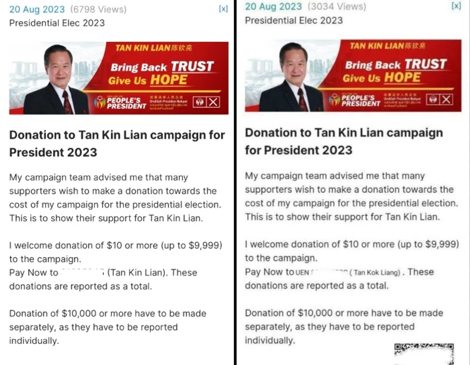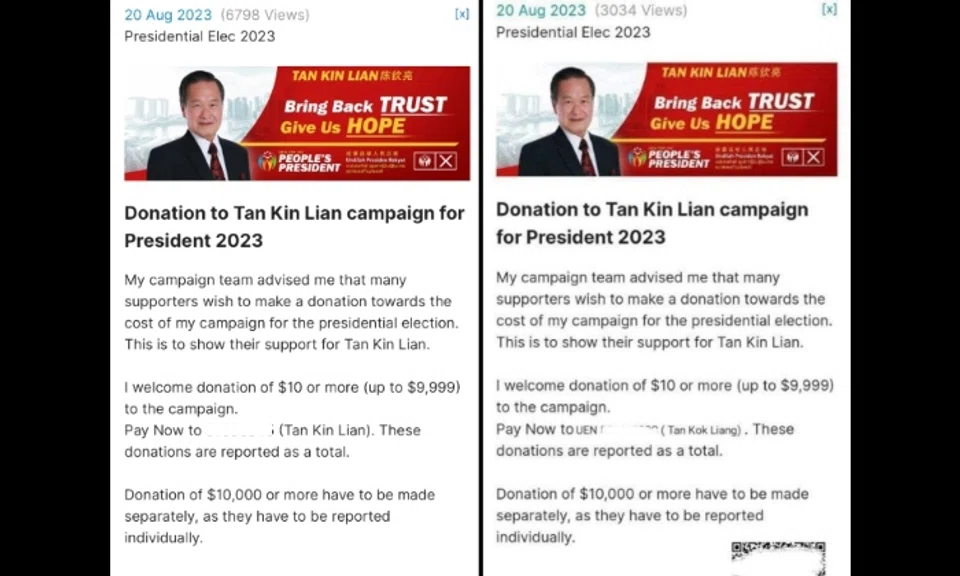 For example, someone impersonated presidential candidate Tan Kin Lian using a fake donation page created to look almost exactly like Mr Tan's actual donation page.