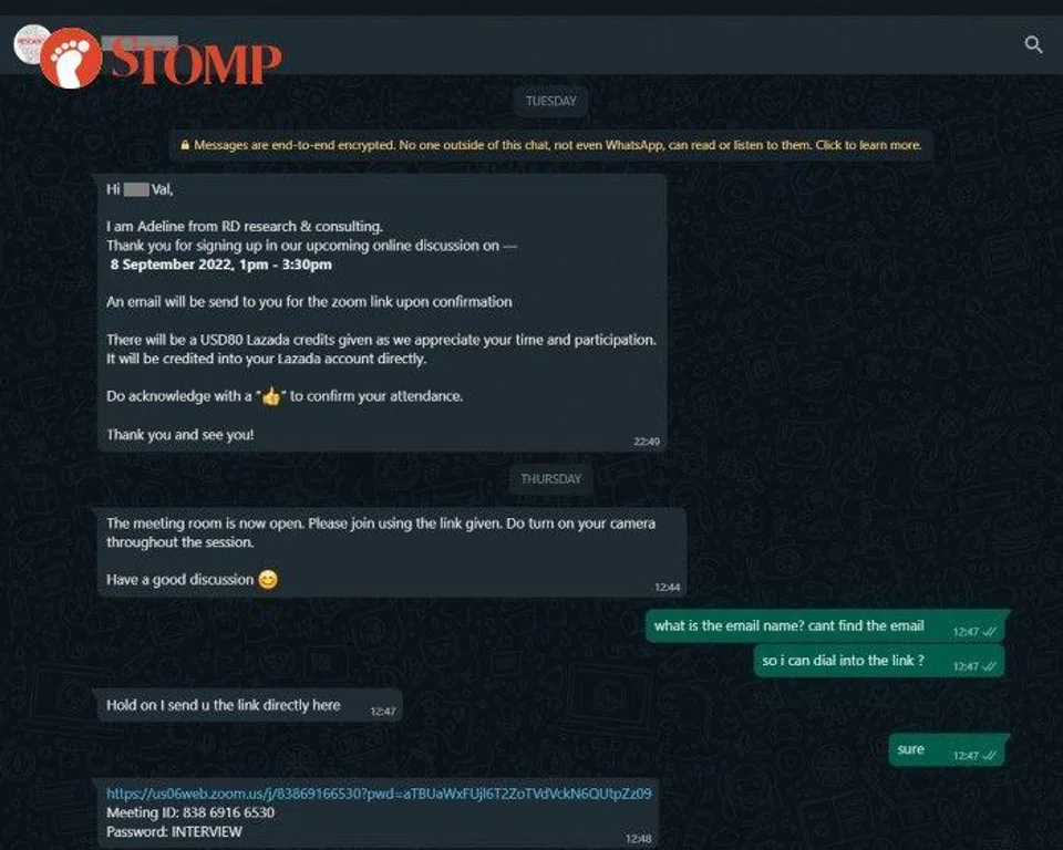 "The survey advertised S$120 of grocery credit, but later, when we filled in our details, it became US$80. I figured maybe there were some exchange rate issues."