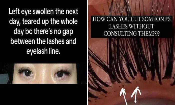 For one woman, however, two unfortunate experiences at the same salon left her with a swollen eye and an alleged unnecessary trim of her “eye curtains”.