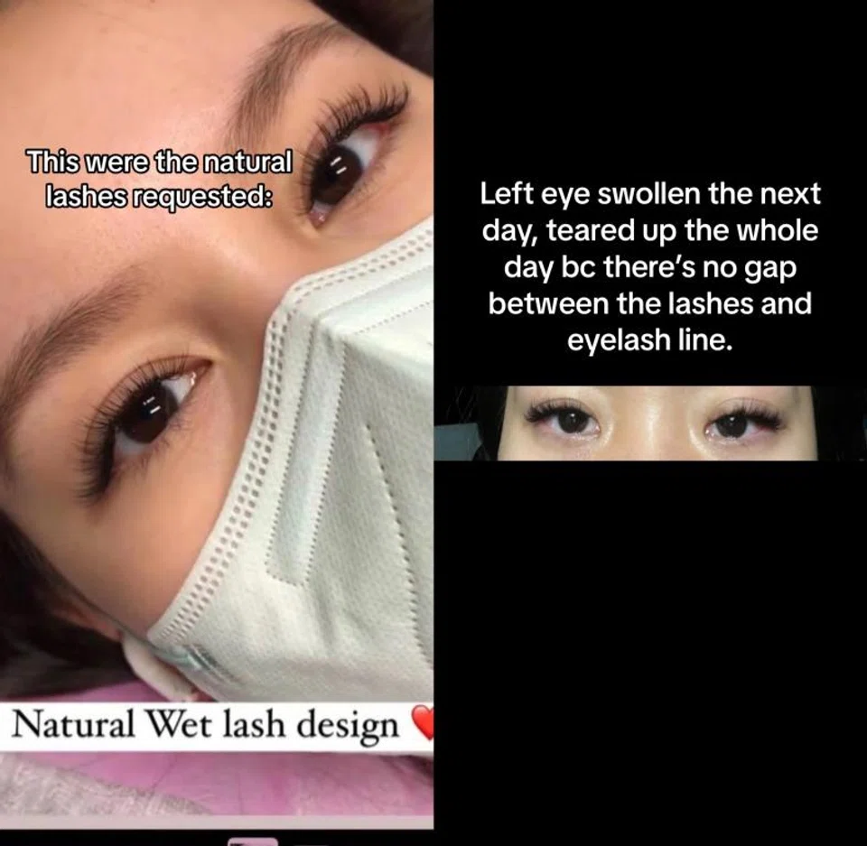 According to her friend who shared details of the incident in a now-deleted TikTok video, F had requested a "Natural Wet Lash" design.