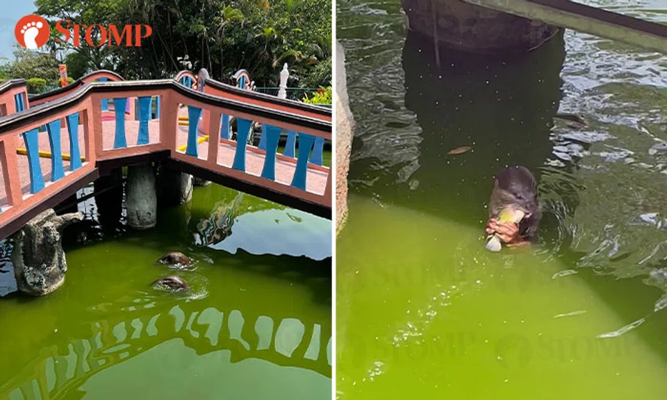 A trio of otters were seen hunting and feasting on fish at the turtle sanctuary at Haw Par Villa on Saturday (Sept 2).