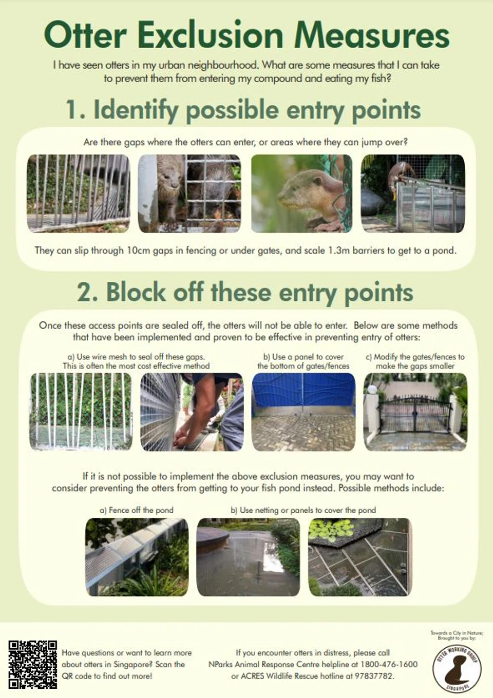On its website, NParks has an advisory on how to prevent otters from entering your compound and eating your fish.
