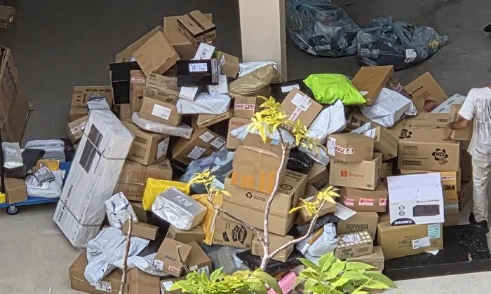 A pile of delivery parcels left haphazardly at a void deck has sparked debate online, with netizens expressing worries about safety hazards, theft risks, and the pressure placed on delivery workers.
