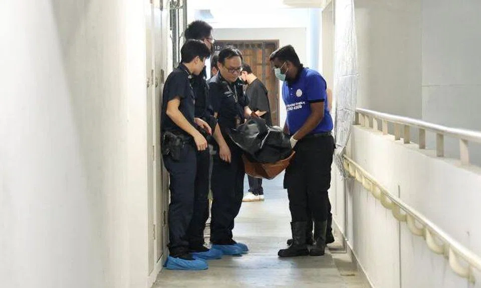 Painters were carrying out works on a gondola at Block 63 Sims Place when they looked into a 10th-floor unit and made a grisly discovery.