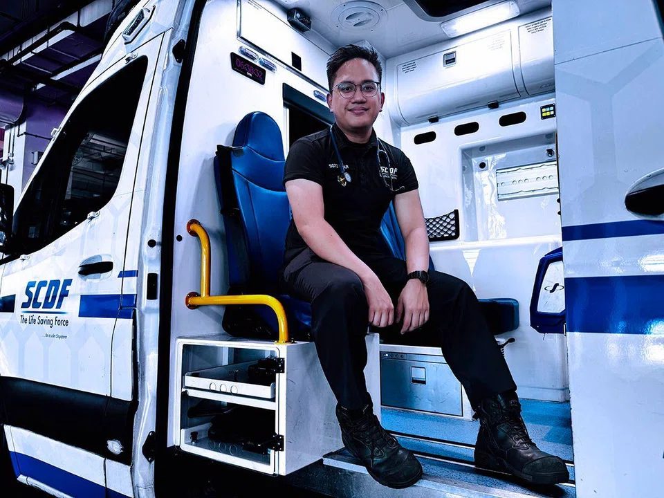 A Singapore Civil Defence Force (SCDF) paramedic was accompanying a pregnant woman to the hospital in an ambulance when she had severe contraction.
