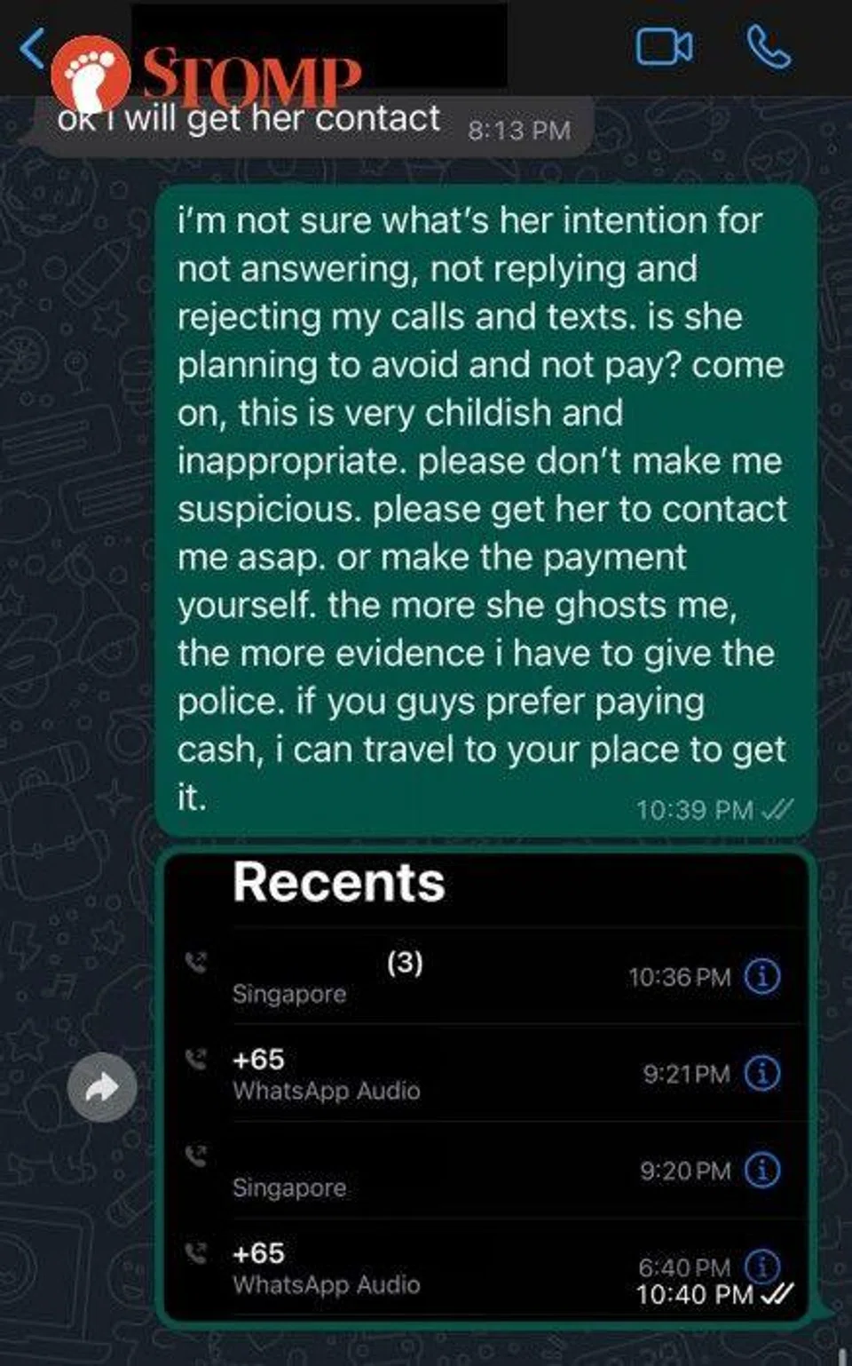The tutor, who wanted to remain anonymous, told Stomp that the parents have owed her money since September and are currently 'ghosting' her.