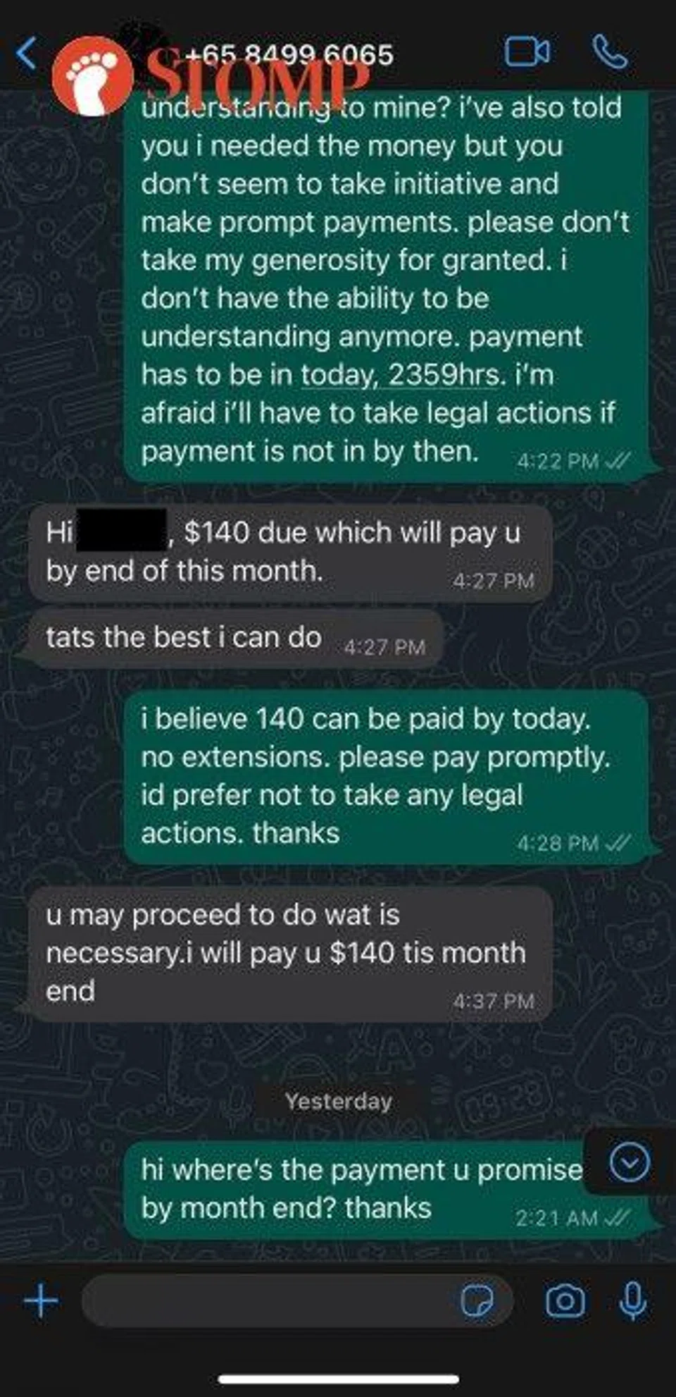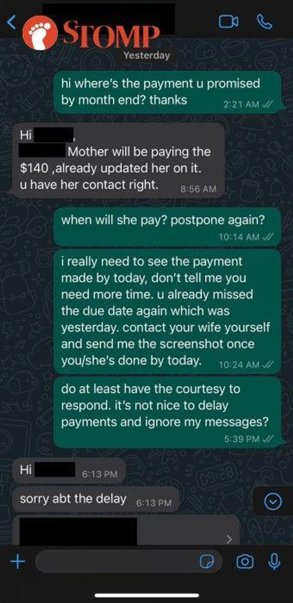 "Only when I asked him if I can expect payment in by that day would he reply another date which I think is really inconsiderate considering that I also told him I needed the money for my bills."
