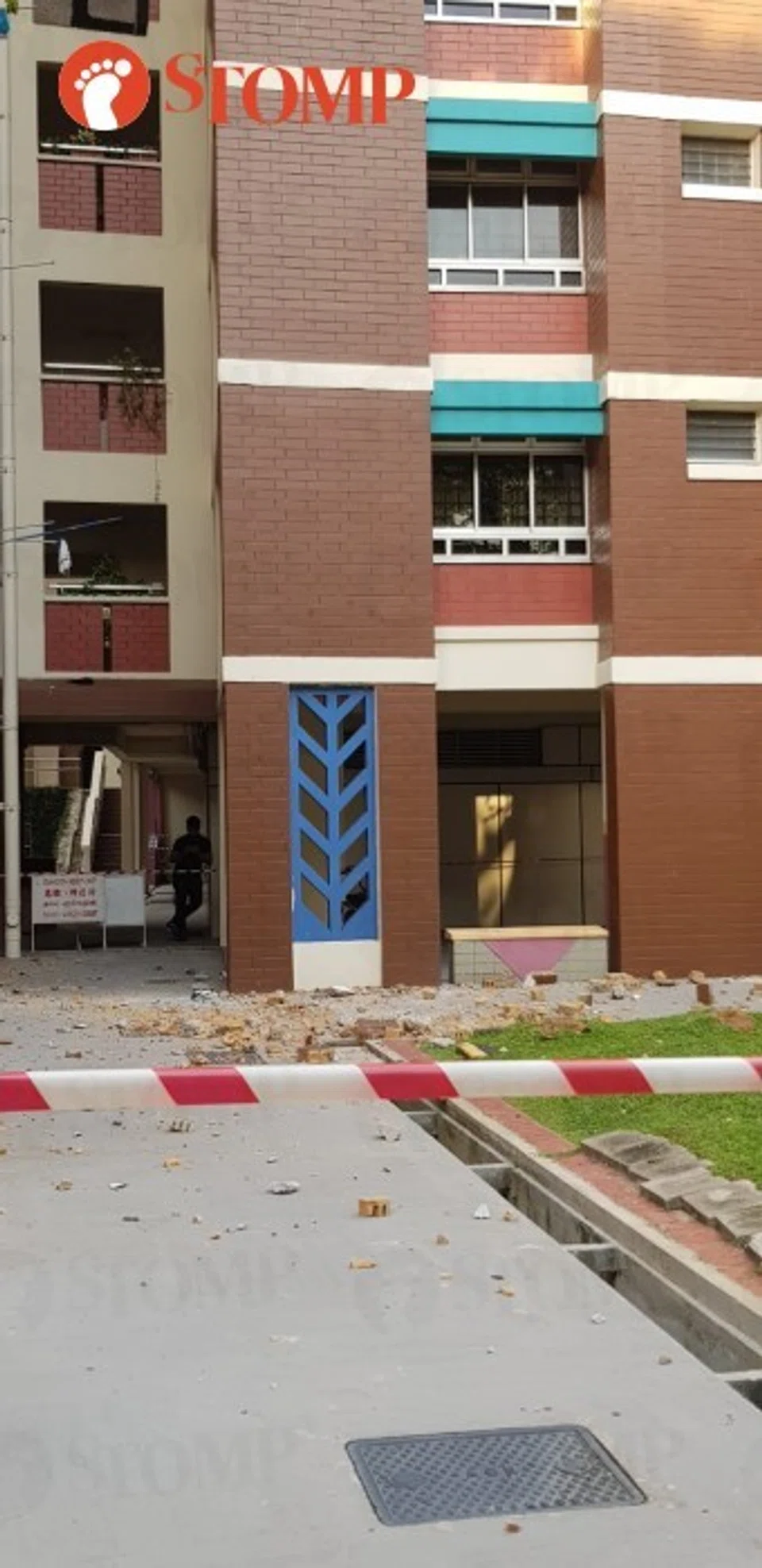Stomper Syed, a resident of the block, alerted Stomp to the incident and shared photos of the debris left at the bottom of the building.