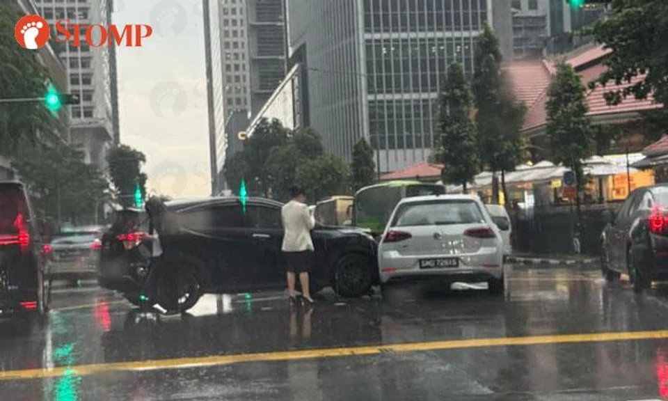 Stomper Gary alerted Stomp to the incident and shared photos of the two cars at the junction of Raffles Quay and Central Boulevard.