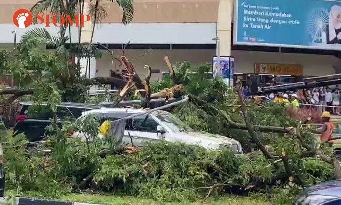 Passers-by rush to help after 20m-tall tree falls on vehicles outside City Plaza in Geylang