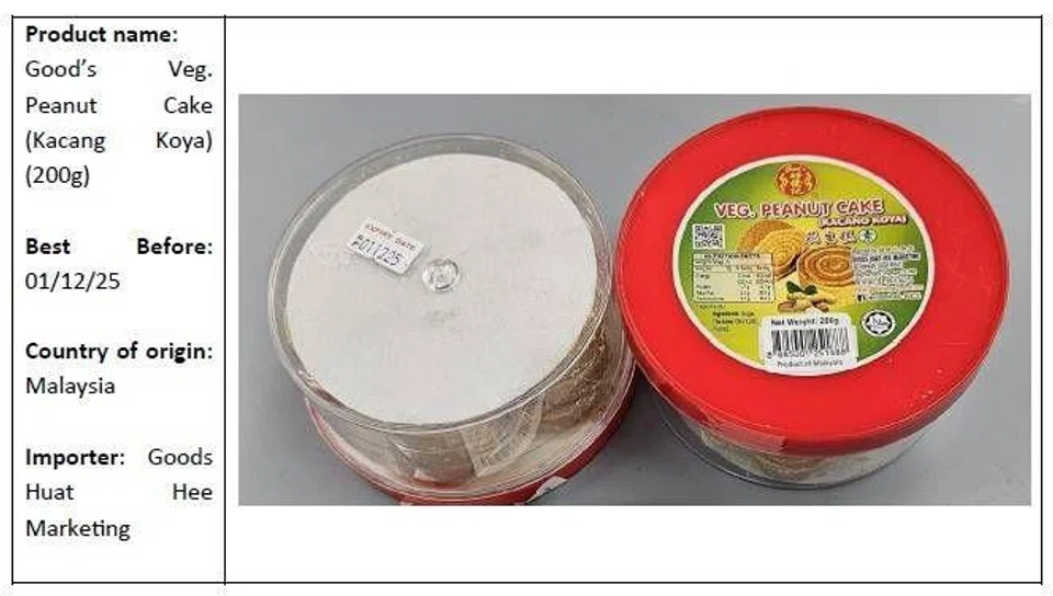 Good's Veg. Peanut Cake was recalled after SFA found it contained milk, which was not declared on the food packaging label.