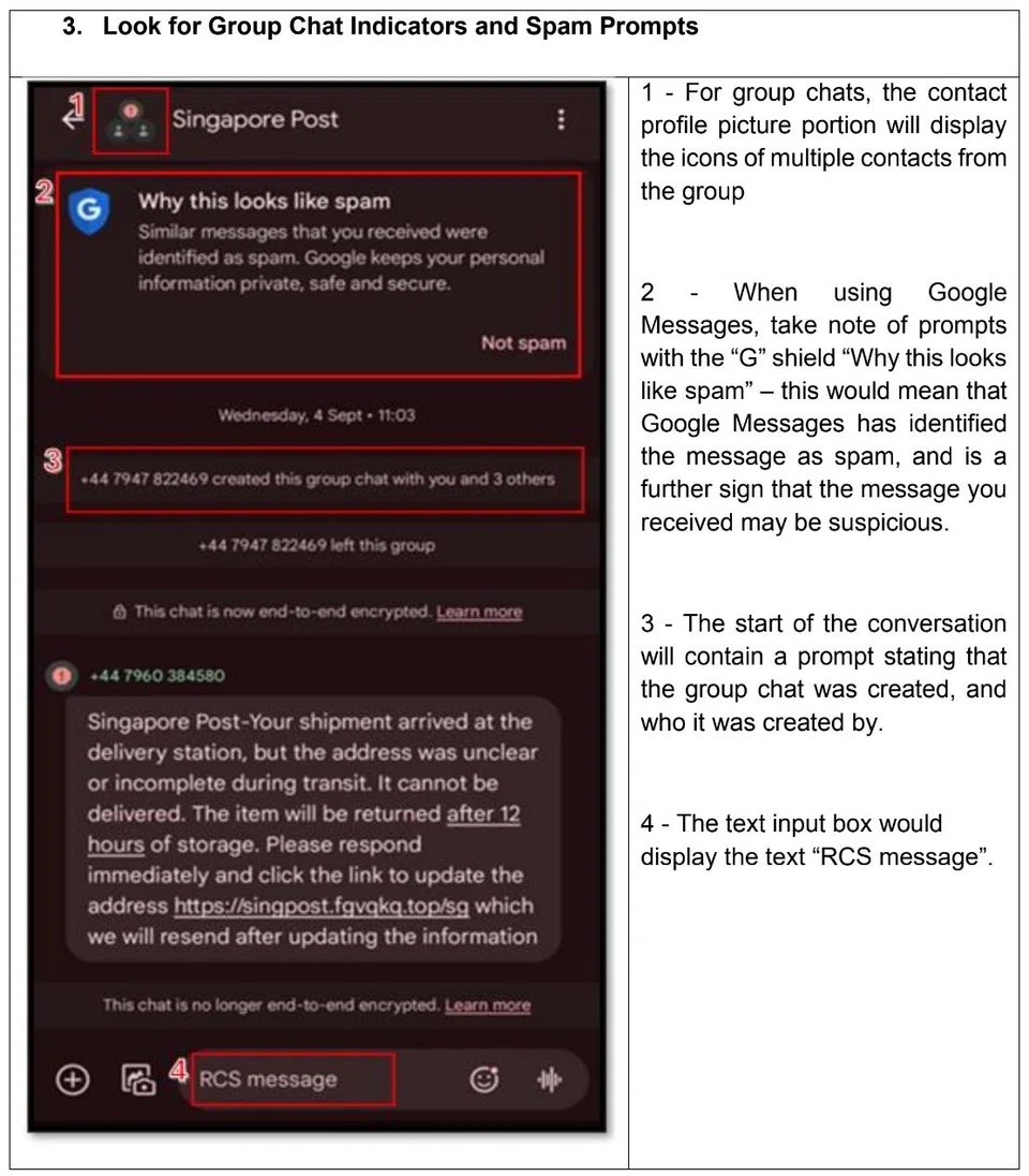The police said they also observed the abuse of online messaging applications such as iMessage and Rich Communication Services (RCS) to deliver these phishing messages.