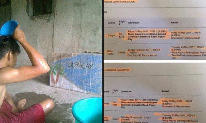 A Filipino man, Rafael-nonog Gomez from Rizal, Philippines got invited to visit his dream vacation destination, Boracay, after a posed photo of him bathing before a cardboard depicting the island went viral on social media.