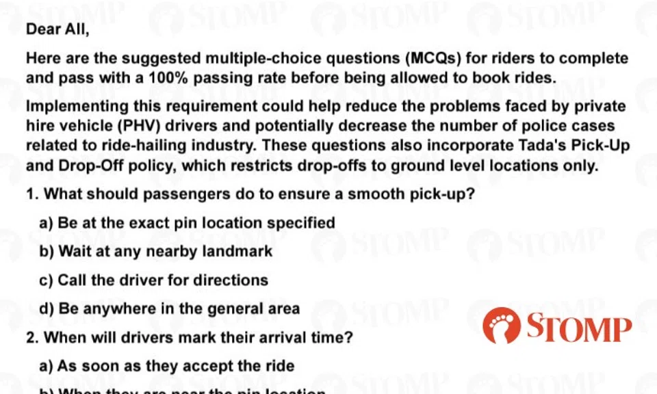"By shifting the responsibility of education and compliance enforcement to ride-hailing platforms through mandatory prompts and quizzes, drivers can provide a more efficient and safer service," said the Stomper.