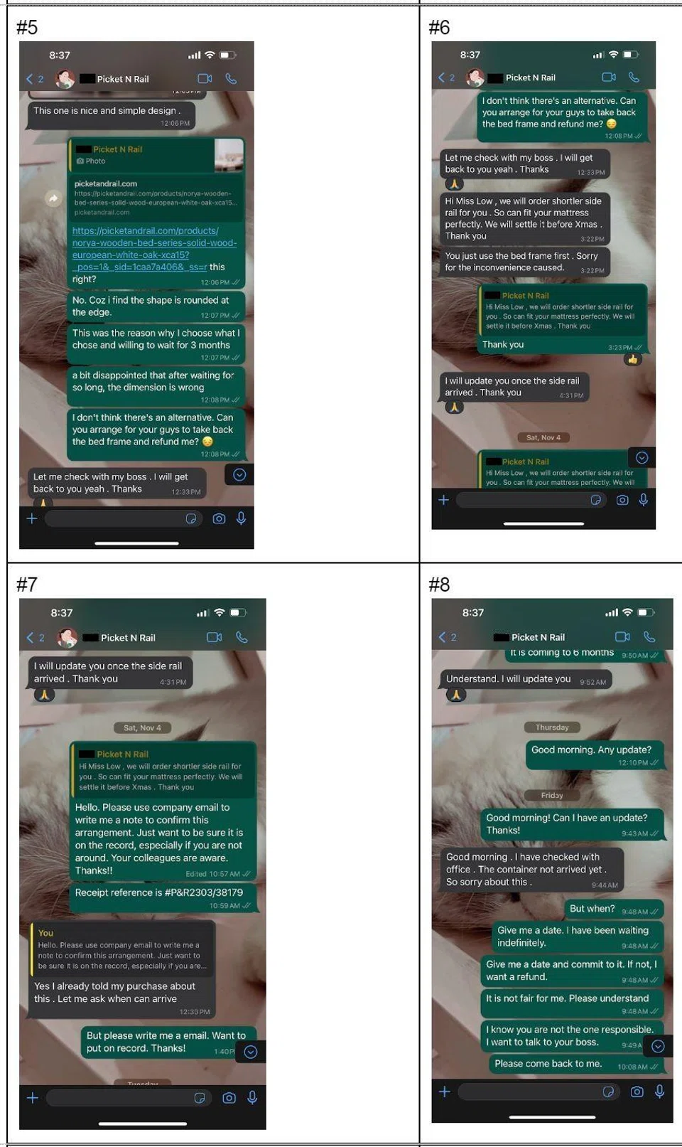 A third Picket & Rail customer, Stomper Elvin, said he ordered two beds on Nov 7 and expected them to be delivered on Dec 1, but when the day came, there was no news.