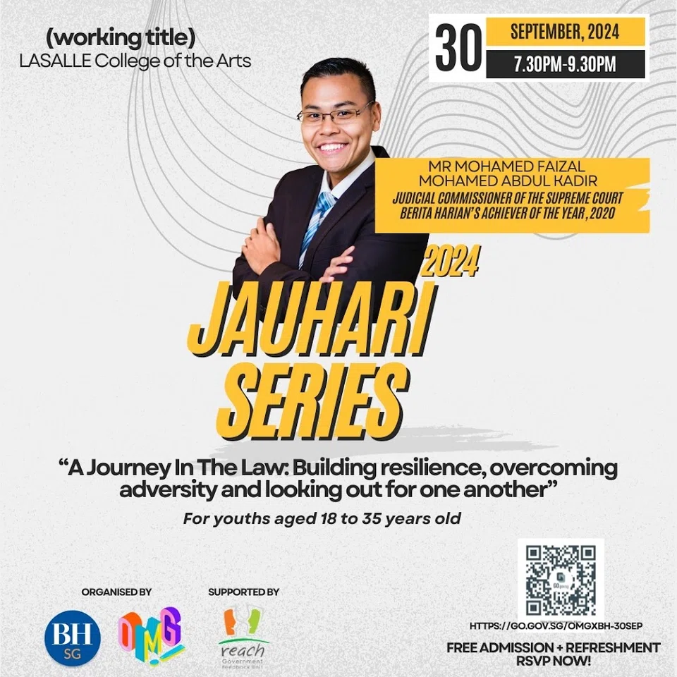 His fireside chat at the Jauhari Series, titled 'A Journey in the Law: Building Resilience, Overcoming Adversity, and Looking Out for One Another', will be an opportunity for youths to hear first-hand how he navigated the challenges of a high-stakes legal career while staying grounded in his values.