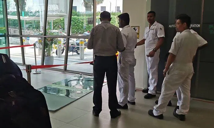 Here is the full statement from SGH: "An automated sliding glass door at Block 5 lobby fell when a visitor on his Personal Mobility Aid (PMA) crashed into it around noon today.