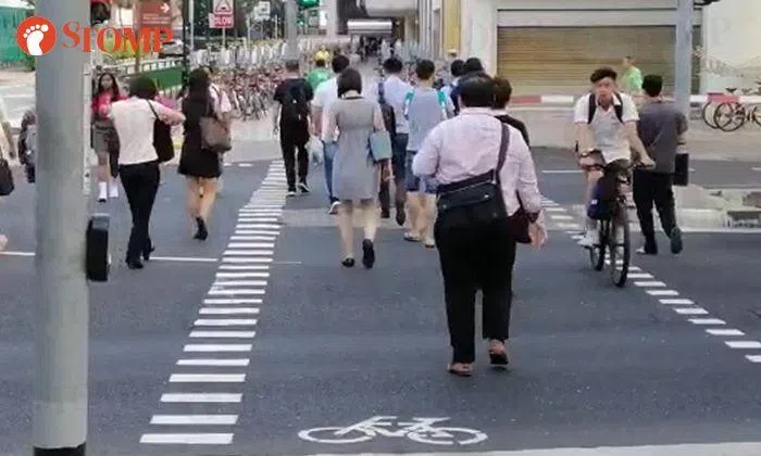 Stomper Tay was walking towards Tampines MRT Station on Tuesday (July 30) at about 8am when he took a video of the pedestrians crossing the road.
