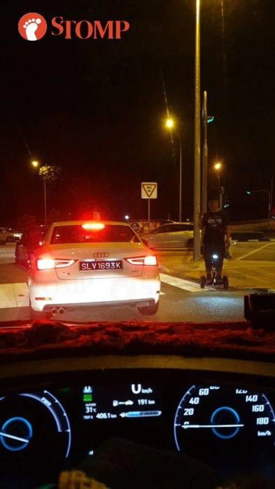 He shared a photo with Stomp of an Audi vehicle and a pedestrian who was on a PMD.