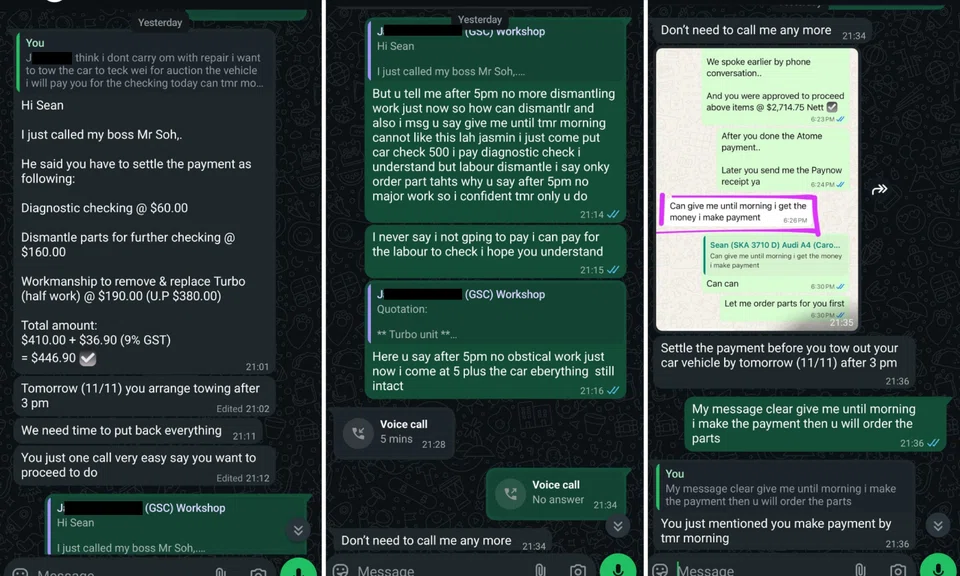The Audi owner said: "Mr. Soh has since posted misleading content online alleging that repairs were carried out. We also discovered online complaints from others alleging similar behavior by GSC Auto Services.