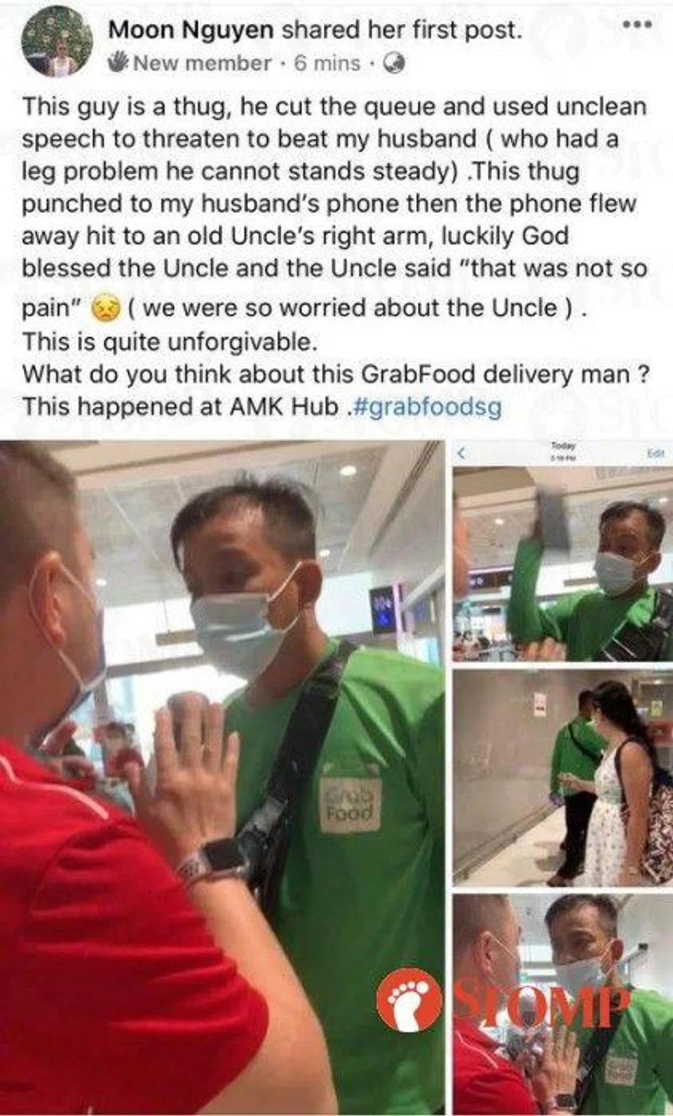 The video was originally posted on a Facebook group by Moon Nguyen, who wrote about her husband's encounter with the GrabFood deliveryman.