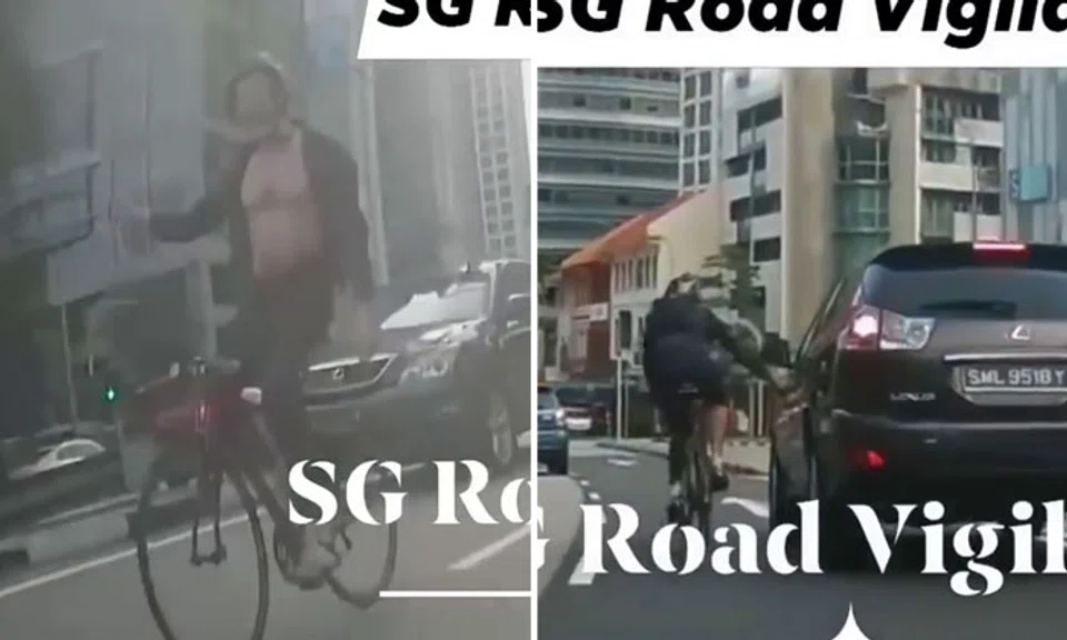 The police are investigating an incident where a cyclist was caught on video weaving in and out of traffic while also gesturing at motorists along River Valley Road towards Clemenceau Avenue on Apr 27.