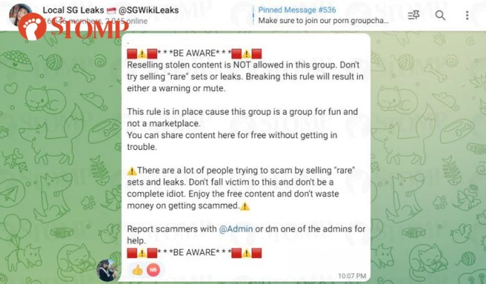 He told Stomp: "People would usually take a screenshot of somebody from TikTok or Instagram and upload it to the Telegram group, asking whether this person has any leaks.