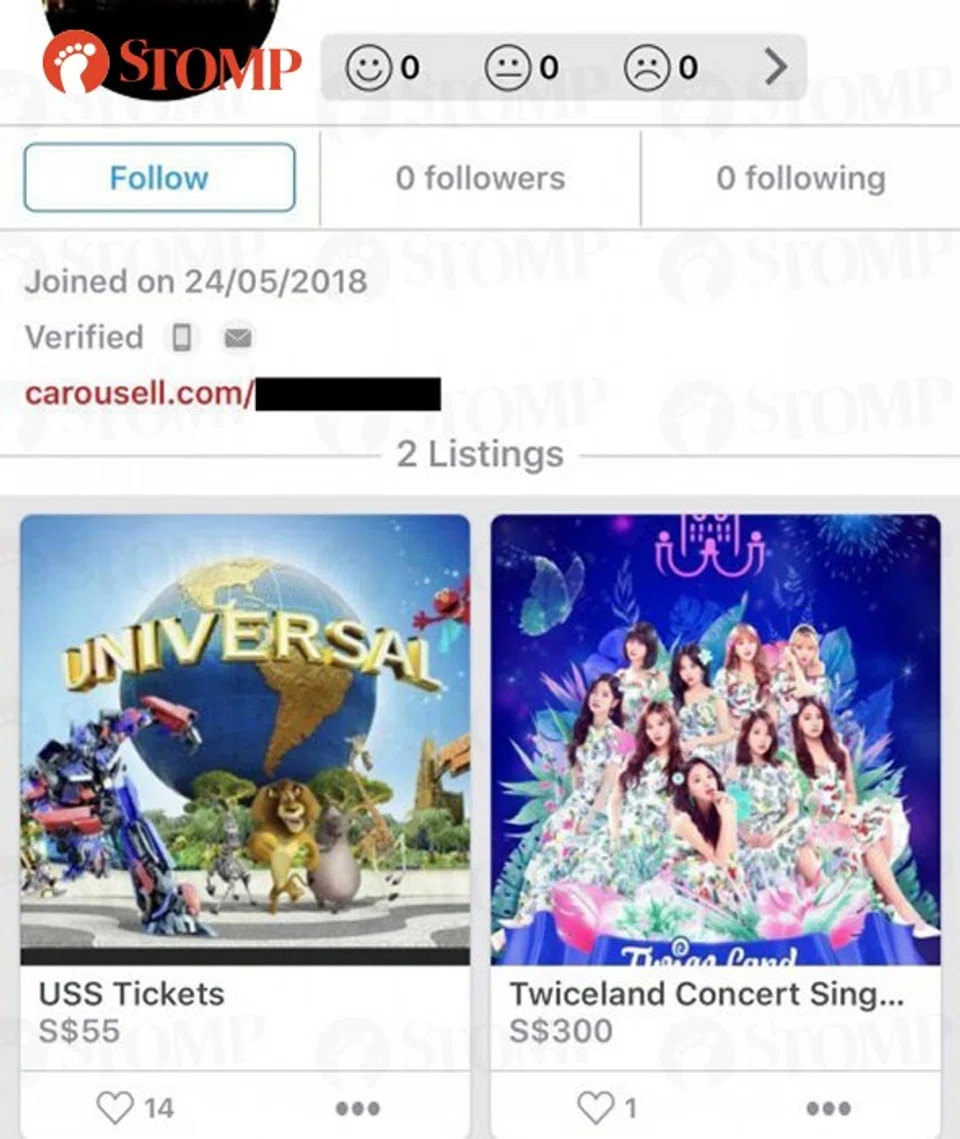 Stomper Shana paid $230 to a Carousell user for four adult tickets and one child ticket to Universal Studios Singapore (USS) -- but all she got in return were two old e-tickets.